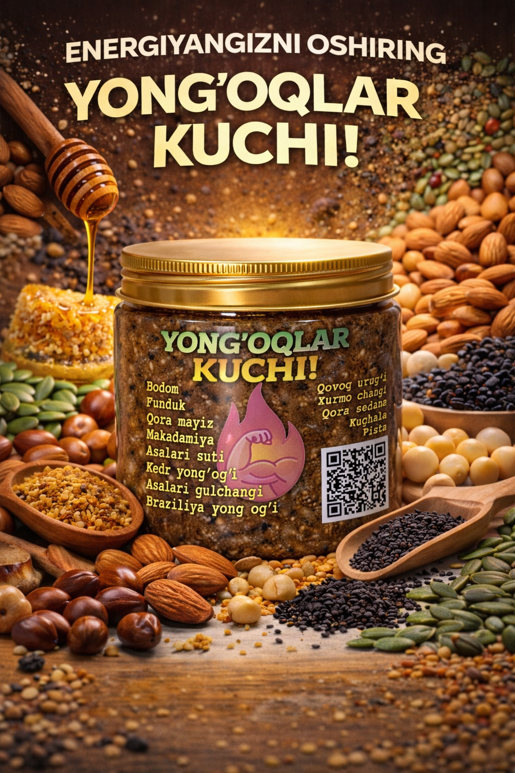 Tabiatning eng kuchli quvvatini o'zingizda his qiling! "Yong'oqlar Kuchi" bilan har bir kuningizni g'olibdek boshlang. Hoziroq buyurtma bering va hayotingizga yangi energiya olib kiring!