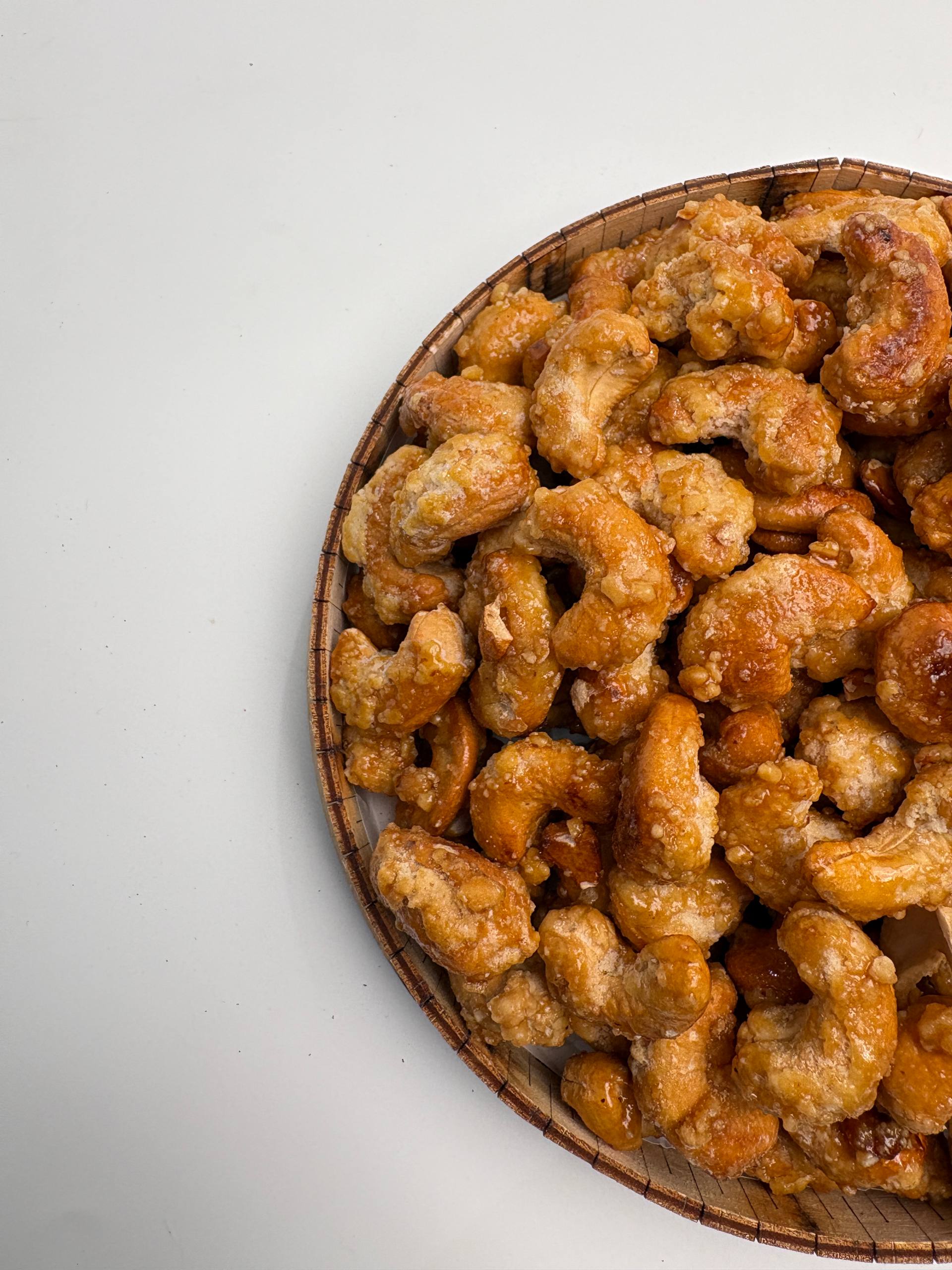 Bizning Asalli keshyularimiz maxsus usulda qovurilgan bo'lib, yupqa va qarsildoq shirin qatlam (karamel yoki asal) bilan qoplangan. Bu shirinlik nafaqat mazali desert, balki kun davomida quvvat bag'ishlovchi to'yimli gazak hamdir.