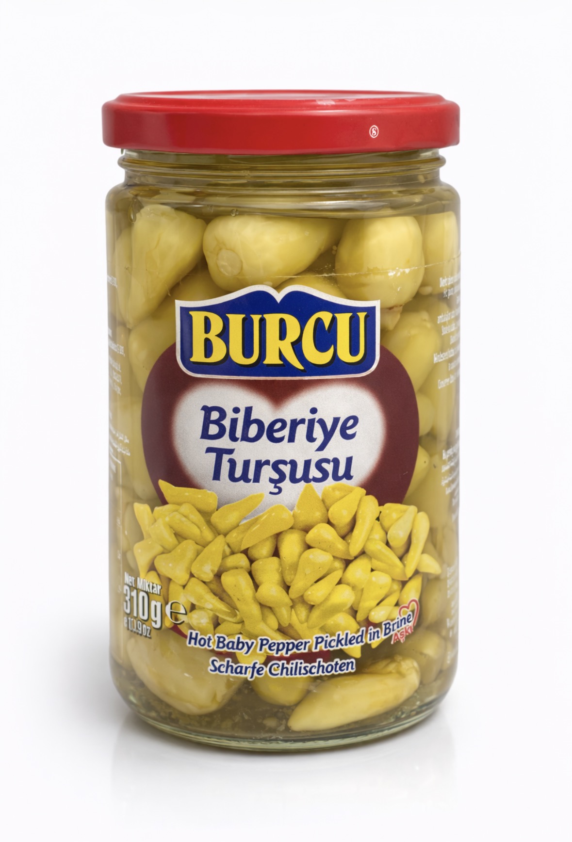 Turkiyaning mashhur "Burcu" brendidan saralangan mitti qalampirlar tuzlamasi. Ushbu "Biberiye" qalampirlari o‘zining qarsildoq teksturasi va o‘ziga xos achchiqligi bilan taomlaringizga o‘zgacha mazza bag‘ishlaydi. Ishtahani ochuvchi va har qanday dasturxonga ko‘rk beruvchi ajoyib qo‘shimcha!